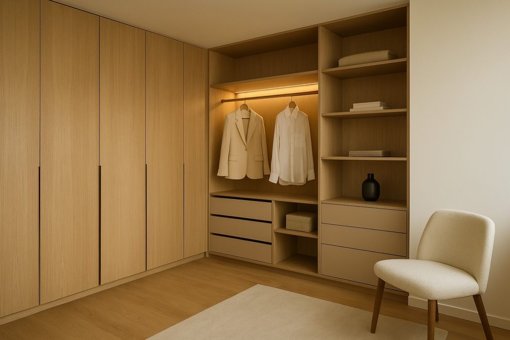 Diseñamos vestidores, armarios, librerías, cocinas, puertas interiores y elementos de transición entre espacios. Cada pieza se adapta a la arquitectura de la vivienda y a la forma de vivir de quien la habita.